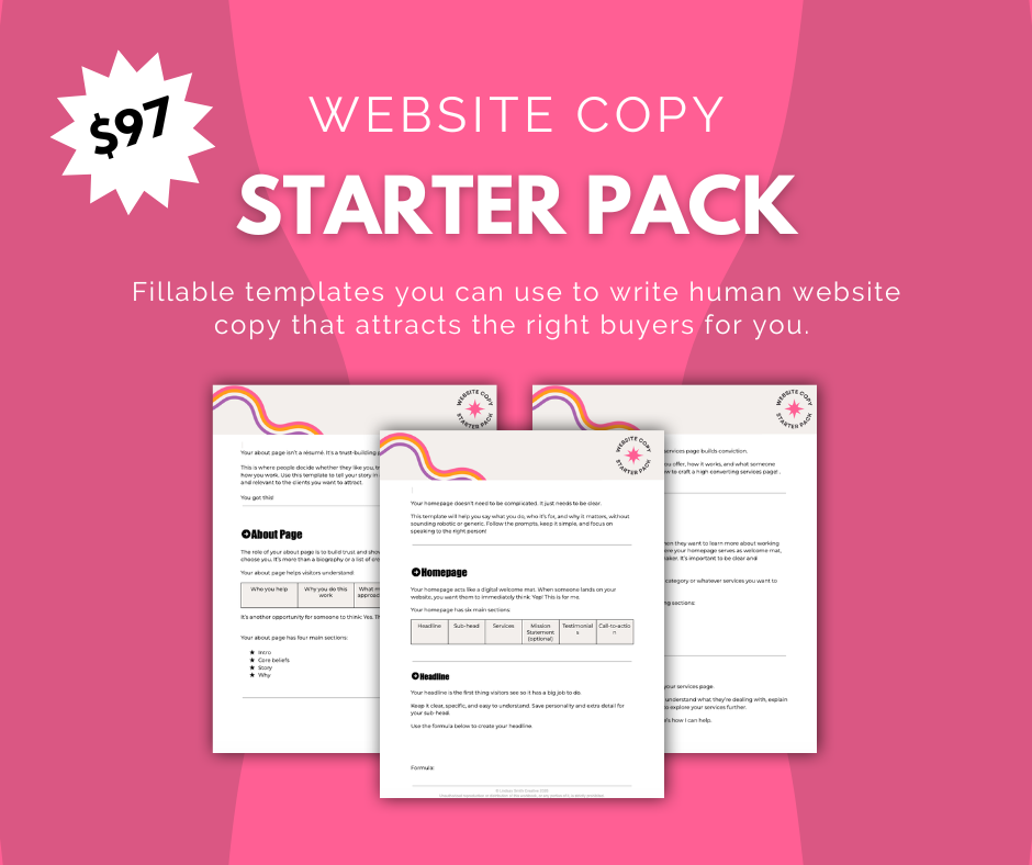 Thatâs what the Website Copy Starter Pack ($97) is for.
